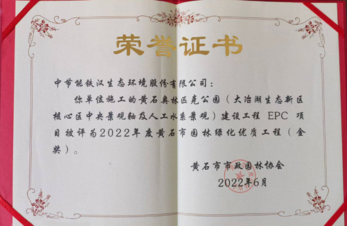 ▲黃石市市政園林協(xié)會頒發(fā)的榮譽證書