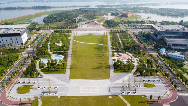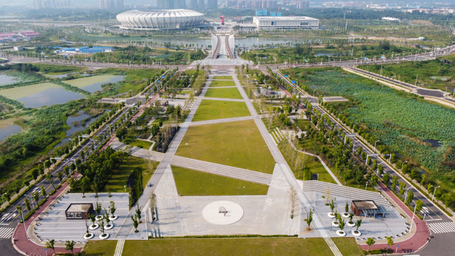 公園位于大冶湖生態(tài)新區(qū)的核心腹地,用地面積66萬平方米,含水域面積13萬平方米,由中央景觀帶和人工水系綠廊兩大板塊組成。項目與周邊的黃石園博園、奧體中心、礦博館、市民之家和城市綜合館等建筑,共同構(gòu)成了黃石重要城市形象門戶。