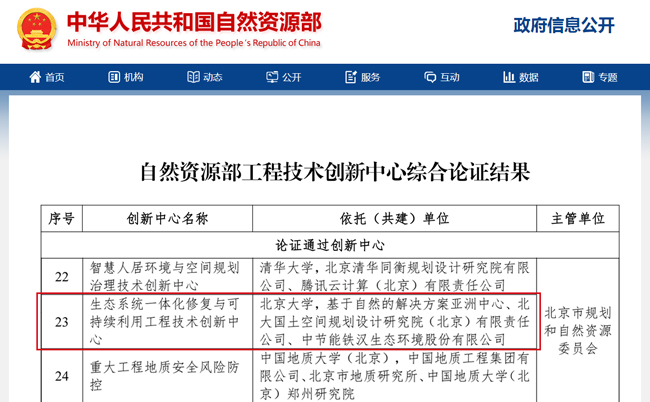 近日,自然資源部公布了50家自然資源部工程技術(shù)創(chuàng)新中心綜合論證結(jié)果。中節(jié)能鐵漢與北京大學(xué)等聯(lián)合共建的“自然資源部生態(tài)系統(tǒng)一體化修復(fù)與可持續(xù)利用工程技術(shù)創(chuàng)新中心”(以下簡稱創(chuàng)新中心)順利通過論證。