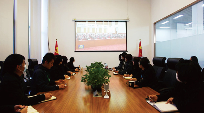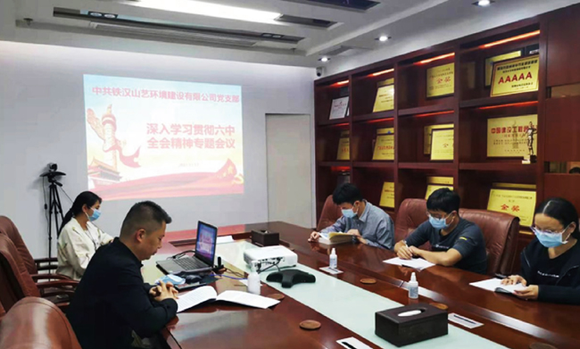 ▲鐵漢建設(shè)組織主題黨日學(xué)習(xí)六中全會(huì)精神