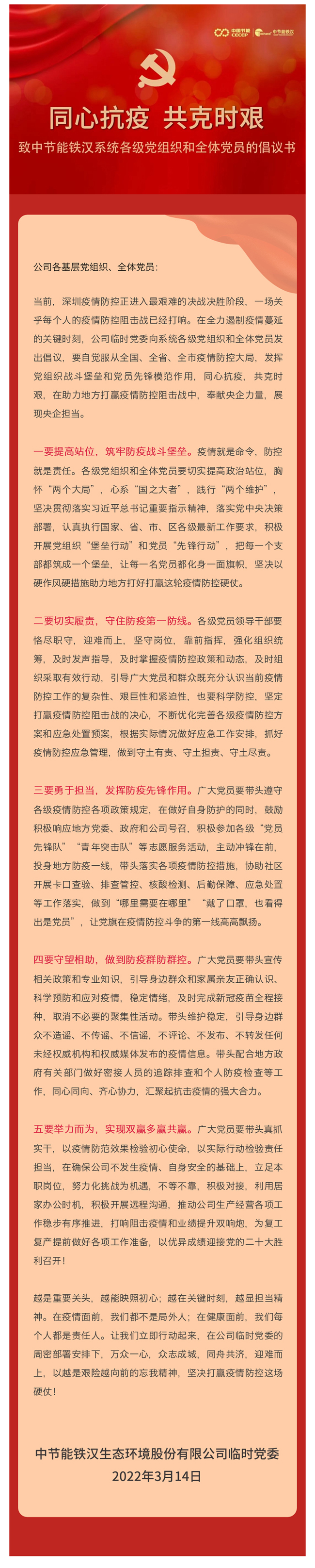 同心抗疫 共克時艱丨致中節(jié)能鐵漢系統(tǒng)各級黨組織和全體黨員的倡議書