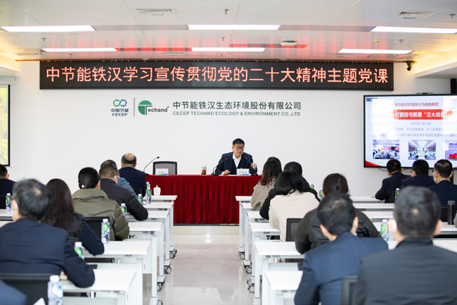 根據(jù)集團(tuán)公司黨委工作部署,中節(jié)能鐵漢黨委工作安排,12月30日,集團(tuán)公司黨委副書記、總經(jīng)理,公司黨委書記、董事長劉家強(qiáng)圍繞學(xué)習(xí)貫徹黨的二十大精神講授專題黨課,并對認(rèn)真抓好黨的二十大精神學(xué)習(xí)宣傳貫徹落實工作進(jìn)行動員部署。會議由集團(tuán)公司總法律顧問,公司黨委副書記、董事胡正鳴主持。