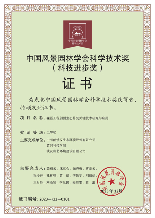 面對(duì)裸露工程創(chuàng)面,地表生態(tài)如何修復(fù),中節(jié)能鐵漢的創(chuàng)新做法是——構(gòu)建可持續(xù)的擬自然植被!日前,中國(guó)風(fēng)景園林學(xué)會(huì)為“2023年度中國(guó)風(fēng)景園林學(xué)會(huì)科學(xué)技術(shù)獎(jiǎng)”獲獎(jiǎng)單位頒發(fā)了榮譽(yù)證書,由中節(jié)能鐵漢申報(bào)的《裸露工程創(chuàng)面生態(tài)修復(fù)關(guān)鍵技術(shù)研究與應(yīng)用》獲科技進(jìn)步獎(jiǎng)二等獎(jiǎng),為該類場(chǎng)景生態(tài)修復(fù)提供創(chuàng)新解決方案。該項(xiàng)目去年底還攬獲了2023年度廣東省勘察設(shè)計(jì)行業(yè)協(xié)會(huì)科學(xué)技術(shù)獎(jiǎng)三等獎(jiǎng)。