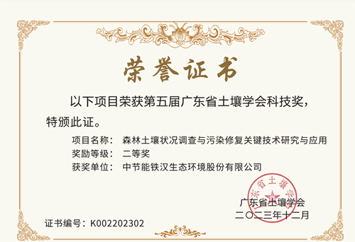 中節(jié)能鐵漢榮獲第五屆廣東省土壤學(xué)會科技獎二等獎