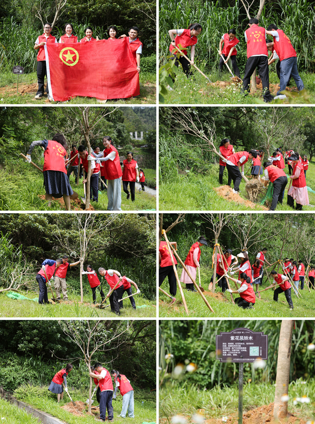 活動(dòng)現(xiàn)場(chǎng),大家在工作人員的指引下進(jìn)行分組,并來(lái)到各自負(fù)責(zé)的區(qū)域開始植樹。參與人員干勁滿滿、默契十足、分工協(xié)作,有的揮鍬培土,有的取水澆灌,現(xiàn)場(chǎng)全是一片忙碌的身影。在大家的共同努力和見證下,紫花風(fēng)鈴木等樹苗穩(wěn)穩(wěn)地扎根土壤,展現(xiàn)出勃勃生機(jī),為深圳市大鵬新區(qū)再添一抹新綠。