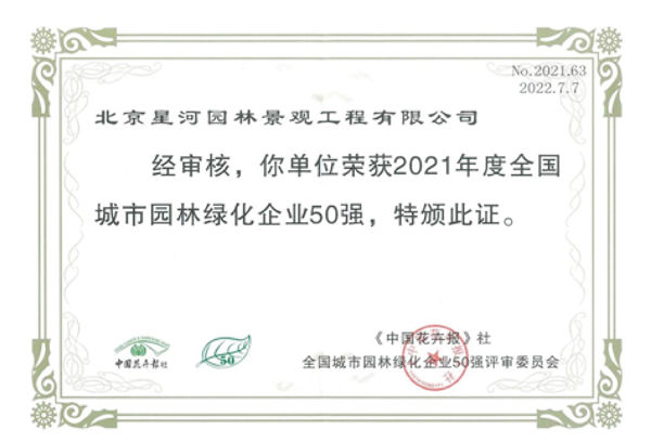 喜報(bào) | 鐵漢星河蟬聯(lián)全國(guó)城市園林綠化企業(yè)50強(qiáng)