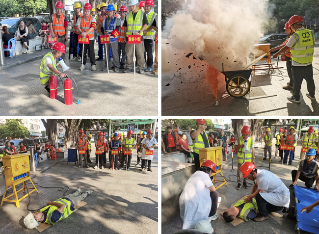 此次應急演練活動主要包括消防應急演練、觸電應急演練、高處墜落演練。消防演練部分主要模擬火災事故發(fā)生時的應急響應和初期滅火,以檢驗項目部在火災發(fā)生時的快速反應能力和協(xié)同作戰(zhàn)能力。觸電應急演練則主要針對作業(yè)現(xiàn)場可能發(fā)生的觸電事故,學習如何正確使用安全工器具,了解觸電后的急救措施以及心肺復蘇法等。高處墜落演練是為了模擬高處作業(yè)過程中發(fā)生意外墜落的情況,檢驗應急預案的有效性和可操作性,同時提高作業(yè)人員的安全意識和應急處置能力。演練過程中,項目部全體人員積極參與,互相配合,順利完成了各項演練任務。